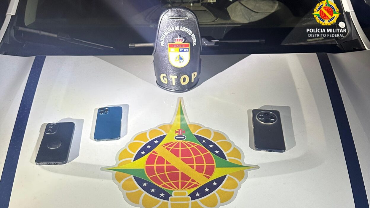 Policiais militares do Grupo Tático Operacional do 27º Batalhão (Gtop 47) apreenderam um menor de idade e recuperaram três celulares roubados durante um arrastão ocorrido na Quadra 605 do Recanto das Emas, na noite deste sábado (9), por volta das 21h30.