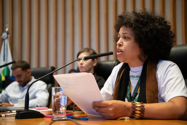 O relato de Débora da Silva emocionou os presentes ao plenário (Ângelo Pignaton/Agência CLDF)