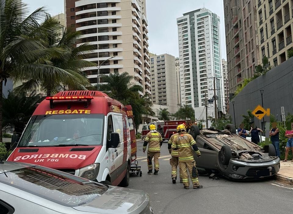 O caso ocorreu na Rua 26 Norte, próximo a uma pracinha da região. Ao chegarem ao local, os bombeiros encontraram um Chevrolet Onix cinza capotado e apoiado sobre o teto, após colidir com um Volkswagen Virtus prata. A situação exigiu atenção imediata devido ao risco na via e à presença de pessoas nas proximidades.