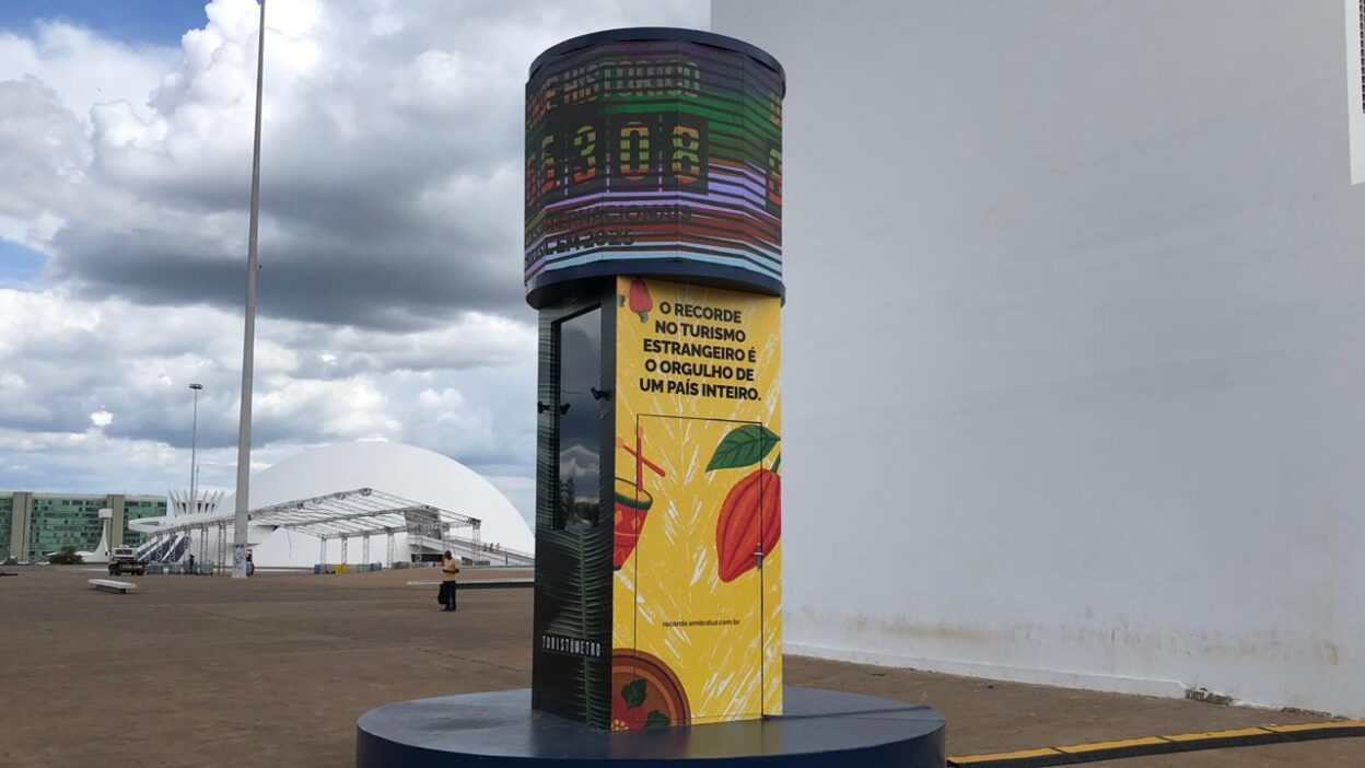 Com 80.966 turistas estrangeiros registrados entre janeiro e setembro de 2025, Brasília passa a figurar entre os principais destinos que servem como porta de entrada para este público no Brasil. Escolhida pela Embratur, a capital ganhou um painel que mostra em tempo real o número de visitantes estrangeiros que entram no país até dezembro deste ano. Chamado de “turistômetro”, ele foi instalado na Esplanada dos Ministérios, próximo a Biblioteca Nacional, no dia 24 de novembro deste ano.