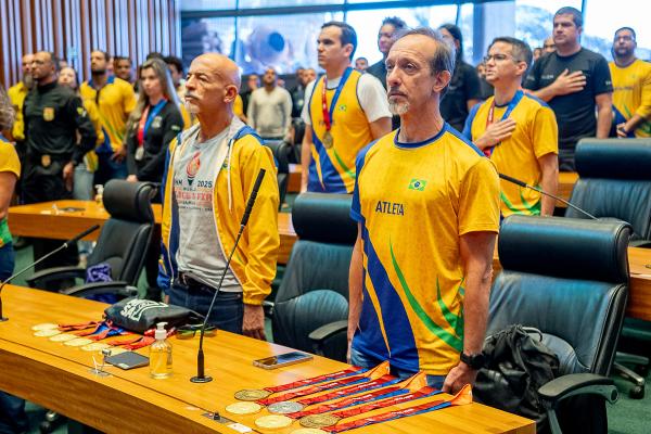 “Só tenho a agradecer por nos honrarem tão bem. O esporte é um importante instrumento para que os policiais, os bombeiros e os agentes do Detran estejam em condições para atender bem a população. Daqui a dois anos, se Deus quiser, estaremos lá novamente”, declarou dirigindo-se aos medalhistas, que lotaram o plenário da Câmara.
