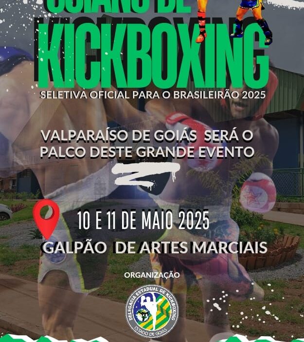 Valparaíso de Goiás recebe mais uma edição do Campeonato Goiano de Kickboxing, nos dias 10 e 11 de maio, no Centro de Treinamento de Artes Marciais. O evento, que reunirá atletas de diversas cidades, também será palco para a seletiva oficial do Campeonato Brasileiro de Kickboxing, com início marcado para 12 de junho, no Ginásio do Cruzeiro, em Brasília.