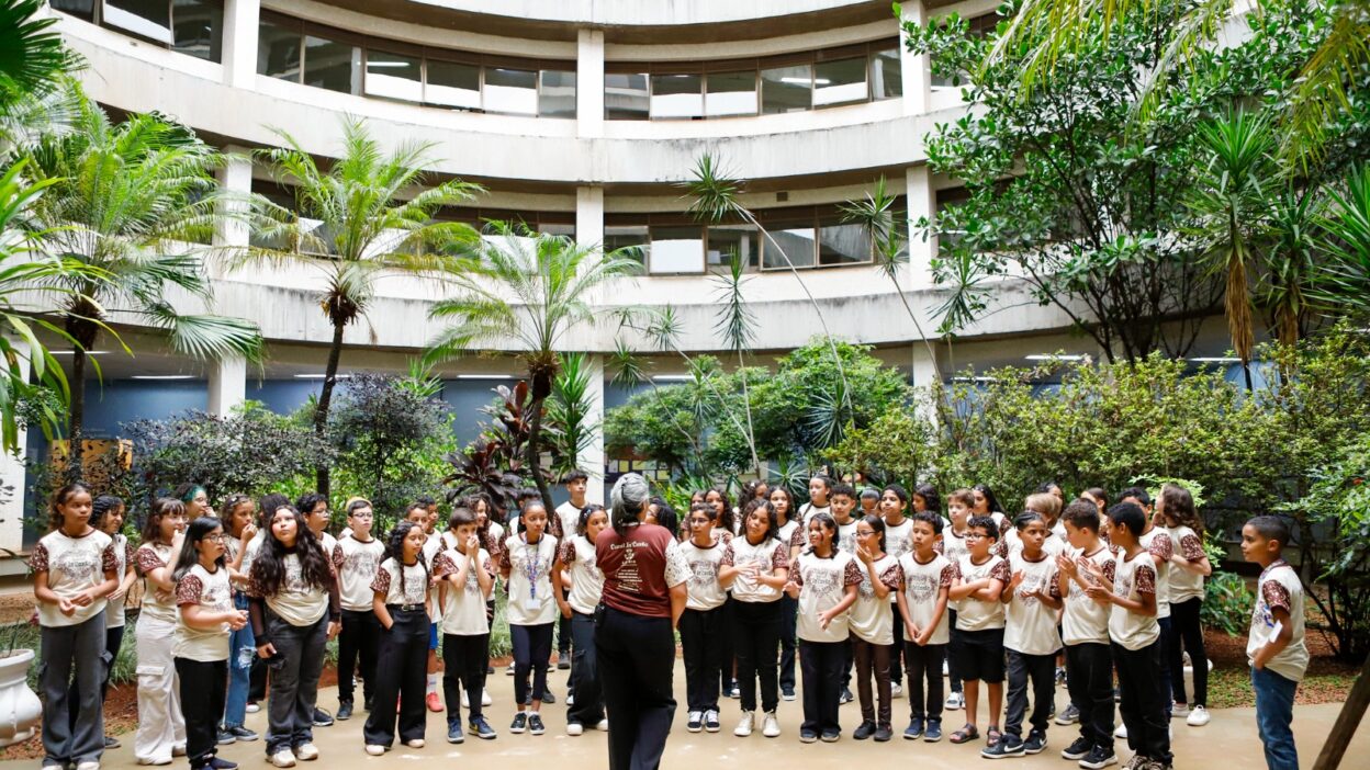 O Hospital Regional da Asa Norte (HRAN) viveu um fim de tarde diferente nesta quarta-feira (27), quando 55 crianças da Escola Classe 410 de Samambaia tomaram o jardim central da unidade e surpreenderam pacientes e profissionais com uma cantata de Natal repleta de vozes e emoção. O Coral InCanto, que mantém parceria com o hospital há três anos, retornou ao local para oferecer um momento de pausa em meio ao ambiente hospitalar.