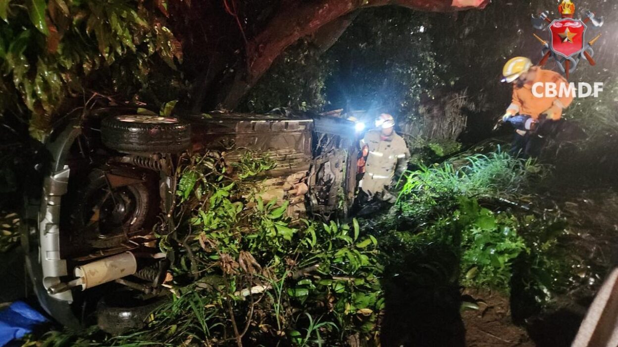 O Corpo de Bombeiros Militar do Distrito Federal atendeu, na noite deste sábado (3), um acidente de trânsito envolvendo o capotamento de um veículo, registrado às 19h06, na saída da Candangolândia, no sentido do Aeroporto de Brasília.