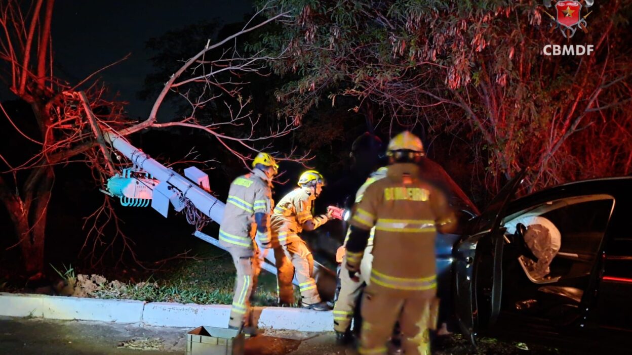 Um acidente na EPIA Norte, em Brasília, mobilizou equipes do Corpo de Bombeiros Militar do Distrito Federal (CBMDF) na noite desta segunda-feira (27). Por volta das 22h03, os militares foram acionados para atender a uma colisão entre um carro de passeio e um poste de alta-tensão, próximo à ponte do Ribeirão Bananal, no sentido Sobradinho.