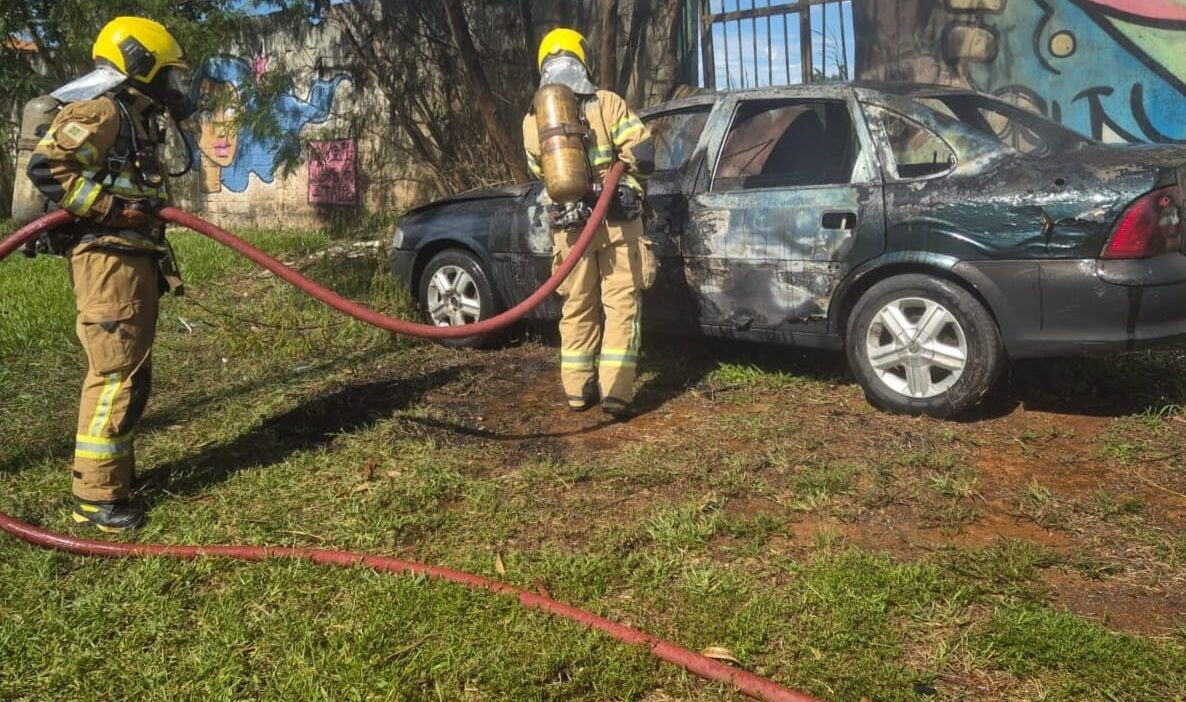 Um veículo de passeio pegou fogo, na tarde deste sábado (27), na QR 117, em Santa Maria. O Corpo de Bombeiros Militar do Distrito Federal (CBMDF) foi acionado às 15h17 e empregou duas viaturas para o atendimento da ocorrência.