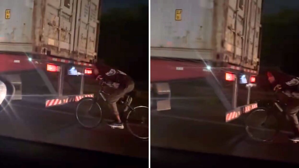 Cena foi filmada na rodovia, na altura de Guarujá (SP), sentido São Paulo. Segundo a Ecovias Imigrantes, a circulação de bicicletas é proibida nas rodovias sem acostamento ou faixa exclusiva, conforme o artigo 244 do Código de Trânsito Brasileiro (CTB).