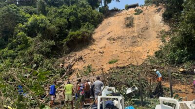 Deslizamento de terra atinge barracas na Praia do Madeiro, em Pipa