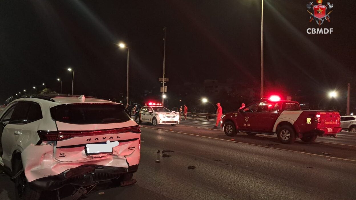 Na noite desta sexta-feira (17) o final do eixão norte teve que ser completamente interditado devido a uma colisão entre dois carros.