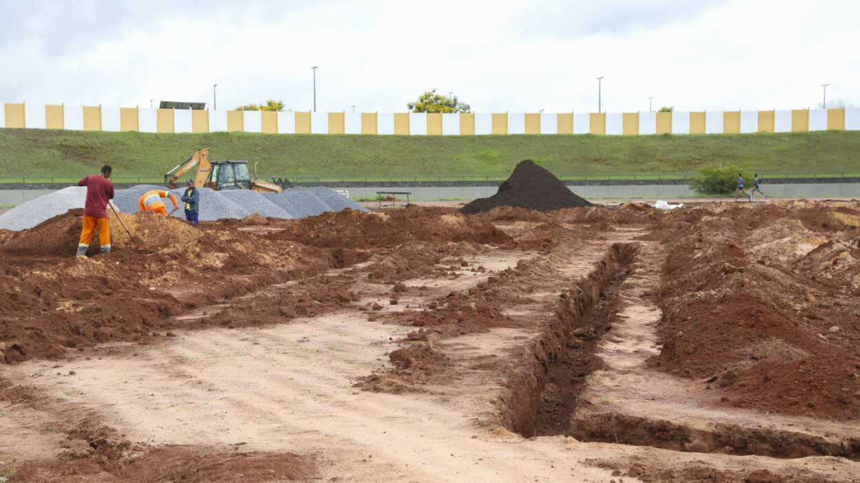 O projeto em andamento prevê a instalação de drenagem em formato de “espinha de peixe”, com tubos de alta densidade, manta geotêxtil e brita para escoamento rápido da água. A estrutura será ligada a um sistema de irrigação automatizada e a um ramal elétrico exclusivo, com controladores que regulam o abastecimento de água entre a cisterna e a rede de alimentação. Depois do preparo do solo e da adubação, o campo receberá grama do tipo Bermuda, usada em competições profissionais pela resistência e pelo desempenho. A empresa responsável também fará a manutenção e o corte por três meses após o plantio.