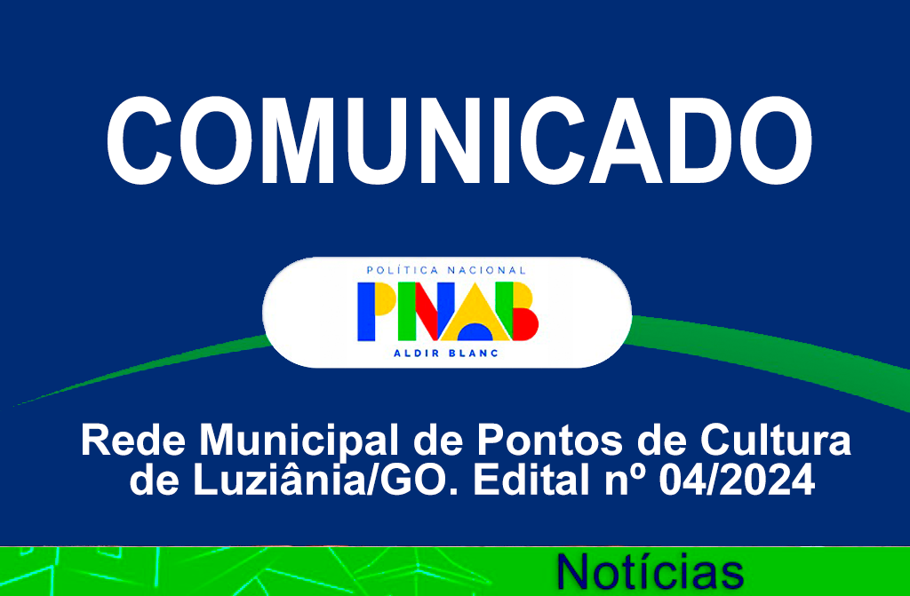 Comunicamos aos Pontos e Pontão de Cultura selecionados no Edital nº 04/2024 – Premiação da Rede Municipal de Pontos de Cultura de Luziânia, que o Ministério da Cultura já disponibilizou a plataforma para a gestão municipal importar as documentações em conformidades com a seleção do edital 04/2024.