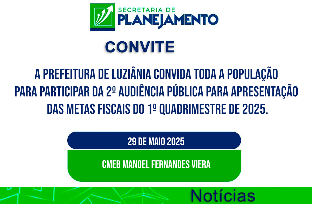 A Prefeitura de Luziânia convida toda a população para participar da 2º Audiências Públicas para a elaboração do seu Plano Plurianual – PPA, um momento essencial de escuta e diálogo com a população.