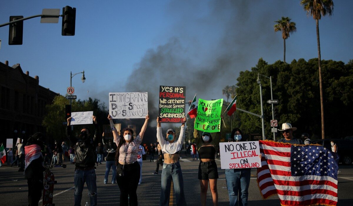 Manifestações contra governo Trump após prisões de imigrantes na cidade escalaram durante o final de semana. Trump anunciou mobilização de 2 mil soldados da Guarda Nacional. EUA mandam fuzileiros navais para Los Angeles; ACOMPANHE PROTESTOS Manifestações contra governo Trump após prisões de imigrantes na cidade escalaram durante o final de semana. Trump anunciou mobilização de 2 mil soldados da Guarda Nacional. Los Angeles tem protestos e confrontos após chegada da Guarda Nacional sob ordem do presidente dos EUA, Donald Trump.. Manifestantes foram retirados de rodovia da cidade com tiros de borracha e gás lacrimogênio. Carros elétricos foram queimados e dezenas foram presos.. O governador da Califórnia, Gavin Newsom, acusou Trump de tentar fabricar uma crise e de violar a soberania estadual. Tropas configuram interferência autoritária, segundo a colunista Sandra Cohen.. A prefeita de Los Angeles, Karen Bass, criticou Trump e pediu que os manifestantes continuem a demonstrar a sua insatisfação, mas de forma pacífica