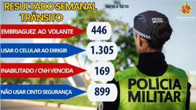 Os agentes de trânsito autuaram ainda 15 motoristas por conduzirem sem habilitação, três por estarem com a CNH vencida há mais de 30 dias, um com o direito de dirigir suspenso e 63 por outras infrações.