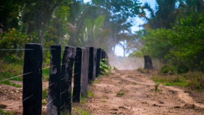 Uma caixa de correio do Camp Mystic vista perto da entrada do local, às margens do rio Guadalupe