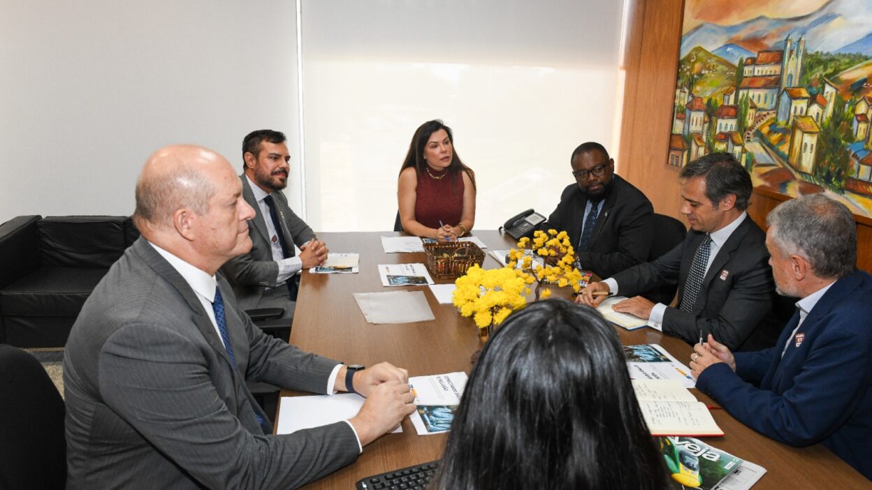 Nesta terça-feira (18), a implementação do projeto foi discutida em uma reunião entre a titular da Sejus, Marcela Passamani, representantes da pasta e uma comitiva de autoridades espanholas, que incluiu membros do governo da Espanha, da Embaixada da Espanha no Brasil e do Itamaraty | Foto: Jhonatan Vieira/Sejus-DF