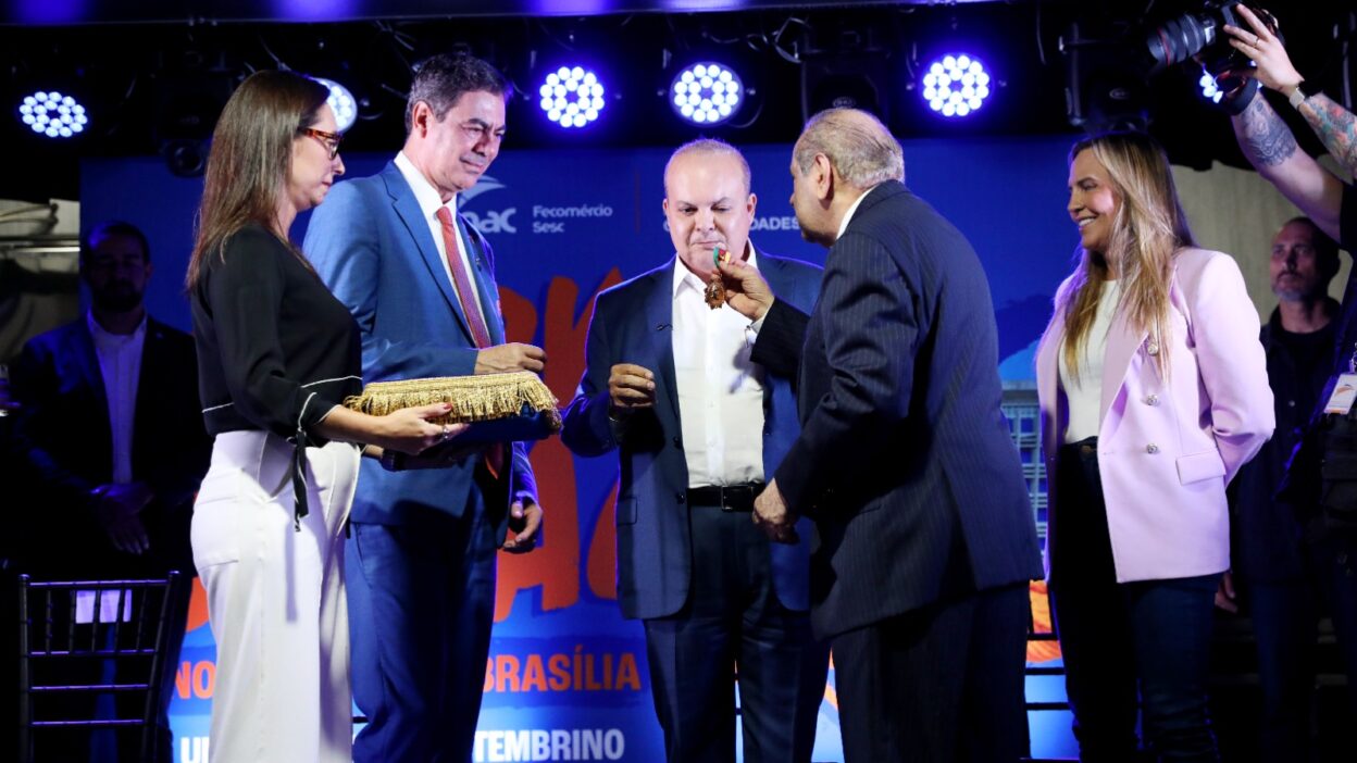 O governador Ibaneis Rocha foi agraciado com a Medalha Nacional do Mérito Comercial da Paz Social João Daudt D’Oliveira, da Confederação Nacional do Comércio (CNC), durante a inauguração do Centro de Educação Profissional Miguel Setembrino, no Setor Comercial Sul (SCS), administrado pelo Serviço Nacional de Aprendizagem Comercial (Senac/DF).