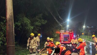 Batida contra poste deixa dois feridos e mobiliza bombeiros no Jardim Botânico