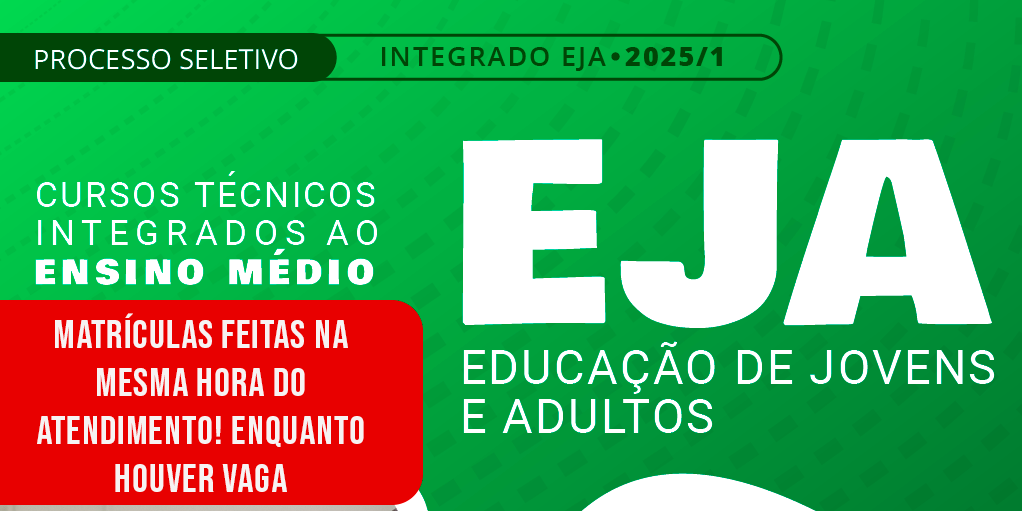Para participar da seleção, é preciso ter idade mínima de 18 anos e ter concluído o Ensino Fundamental. Candidatos que já iniciaram, mas não concluíram o Ensino Médio, podem se inscrever, porém deverão cursar desde o primeiro ano.Acompanhe esta seleção em www.ifg.edu.br/estudenoifg, depois vai em seção: EJA- Educação de Jovens e Adultos. Já neste menu clique no link: Seleção EJA- Vagas Remanescentes 2025/1- Câmpus Valparaíso. Edital aqui.