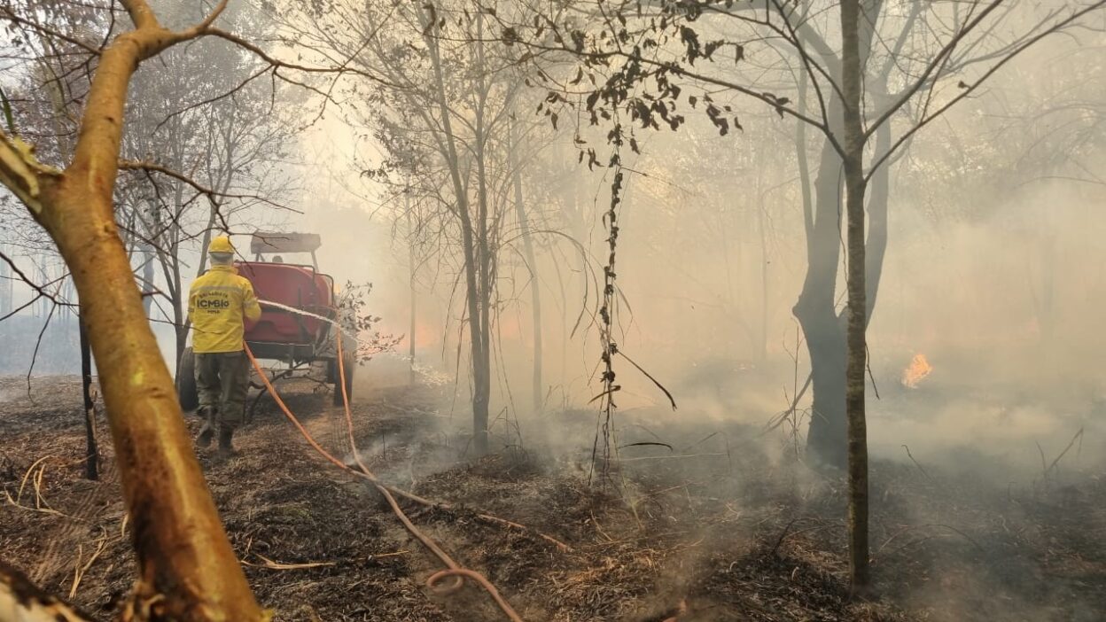 Área de preservação afetada, entre Araçoiaba da Serra e Iperó (SP), é de 900 hectares – mais de 120 campos de futebol. Fogo começou na sexta-feira (19) e, segundo o ICMBio, está controlado. Voluntário relatou cenário de ‘muita tristeza’ ao ver a floresta destruída pelo fogo.