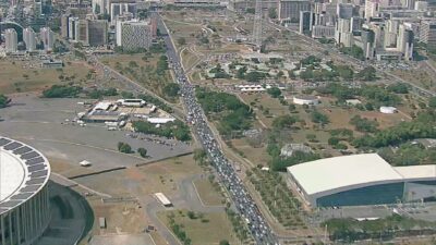 Manifestação de professores ocupa Eixo Monumental e deixa congestionamento no centro de Brasília | Distrito Federal