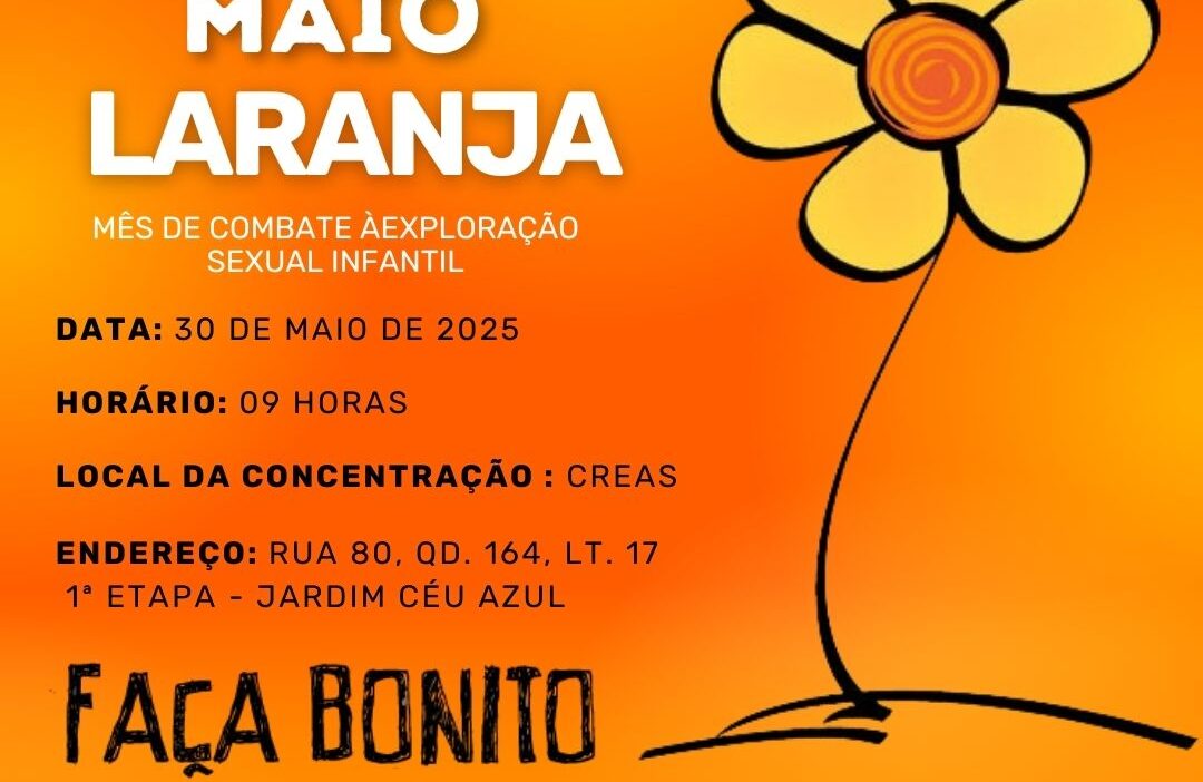 Como parte da campanha Maio Laranja, que visa o enfrentamento ao abuso e à exploração sexual de crianças e adolescentes, será realizada uma caminhada de conscientização nesta sexta-feira, 30 de maio, no bairro Céu Azul.