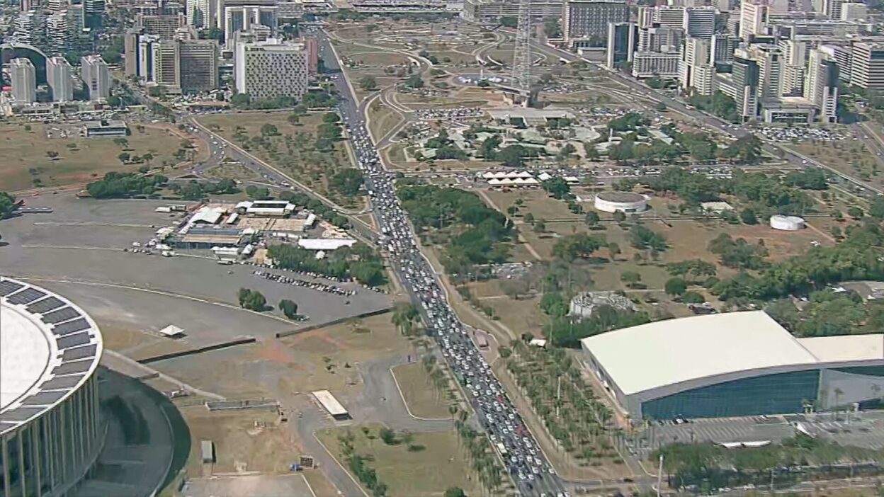 Uma das pistas do Eixo Monumental foi bloqueada, na altura do Palácio do Buriti, pela manifestação dos professores da rede pública do Distrito Federal, nesta terça-feira (10). Seis faixas, no sentido para Taguatinga, foram ocupadas pelos servidores, que estavam reunidos desde o começo da manhã, em uma assembleia que decidiu pela manutenção da greve.
