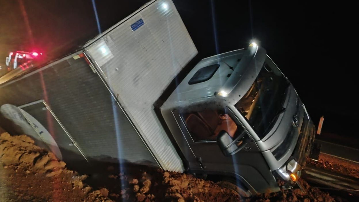 Um caminhão conduzido por um motorista embriagado bateu contra a defensa metálica e acabou tombando na Rodovia Dona Leonor Mendes de Barros (SP-333), na manhã deste sábado (7), em Guarantã (SP).
