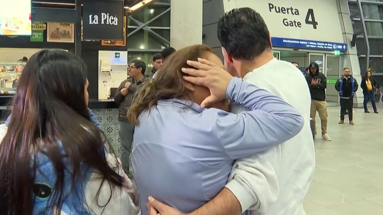 Um voo transportando 45 imigrantes chilenos deportados pelos Estados Unidos pousou em Santiago, capital do Chile, na quinta-feira (22). As famílias receberam os passageiros nos portões do aeroporto, enquanto choravam e se abraçavam.