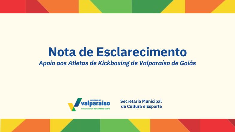 A Prefeitura de Valparaíso de Goiás, por meio da Secretaria Municipal de Cultura e Esporte, vem a público esclarecer e reforçar seu compromisso com o incentivo ao esporte e com os mais de 30 atletas do município que se classificaram para o Campeonato Brasileiro de Kickboxing, a ser realizado entre os dias 18 e 22 de junho, no Ginásio do Cruzeiro, em Brasília (DF).