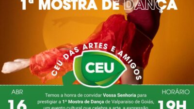 Entorno1 Min Leitura Redaçãoem20/04/2025 1ª MOSTRA DE DANÇA CELEBRA E ARTE E O TALENTO LOCAL NO CÉU DAS ARTES Acontece nesta quarta-feira, 16 de abril, a 1ª Mostra de Dança de Valparaíso de Goiás, às 19h, no CEU das Artes, na Etapa C. O evento,…