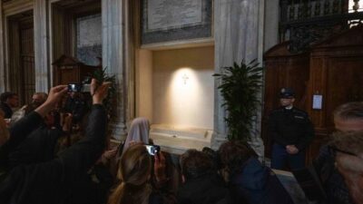 Mundo2 Min Leitura Redaçãoem27/04/2025 Centenas fazem fila em 1º dia de visitação do túmulo do papa Francisco Centenas de pessoas passaram pelo túmulo do Papa Francisco desde o início da manhã deste domingo (27), na basílica romana de Santa Maria…