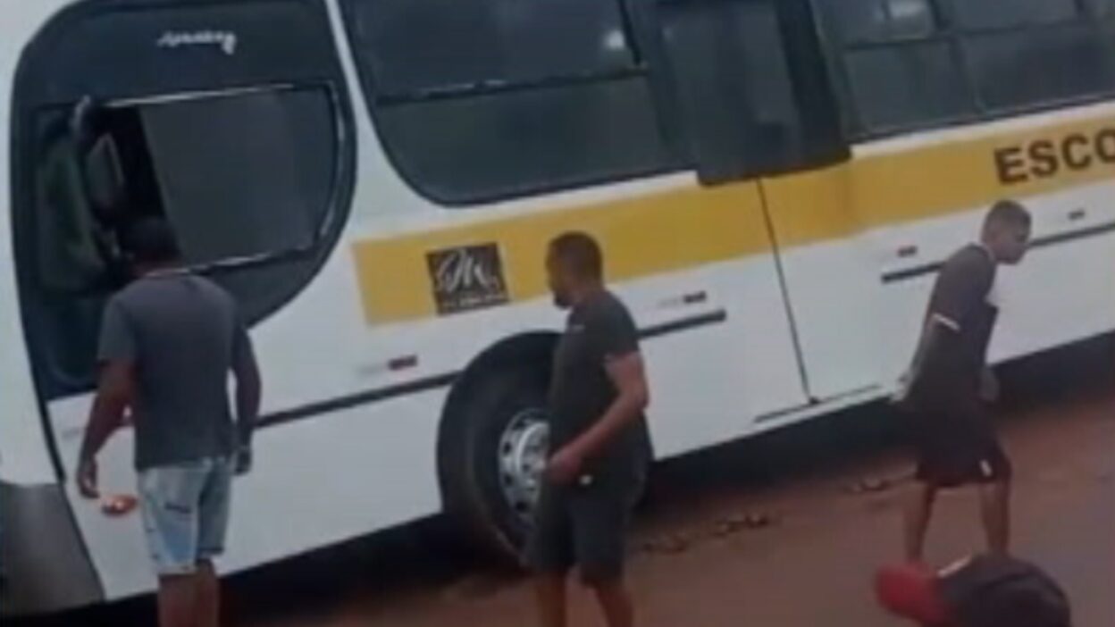 Nas imagens dá para ver que as crianças que estavam no veículo precisaram de ajuda para sair. Em seguida, elas atravessavam sozinhas a rua cheia de lama.