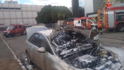 Veículo é destruído por incêndio em Taguatinga; não há feridos