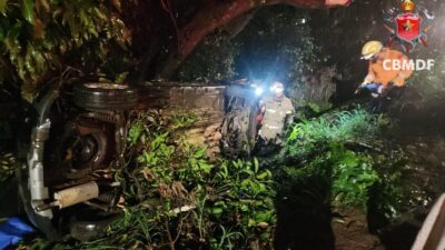 O Corpo de Bombeiros Militar do Distrito Federal atendeu, na noite deste sábado (3), um acidente de trânsito envolvendo o capotamento de um…