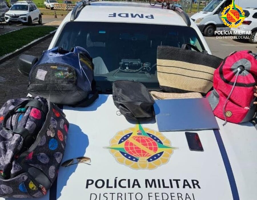 Os suspeitos foram localizados ainda com os itens subtraídos e reconhecidos pelas vítimas como autores do crime. Entre os bens recuperados estavam mochilas com roupas e pertences pessoais, além de um notebook e um celular, avaliados em cerca de R$ 5 mil. Durante a abordagem, os policiais constataram que um dos detidos estava em prisão domiciliar, descumprindo as condições impostas pela Justiça.