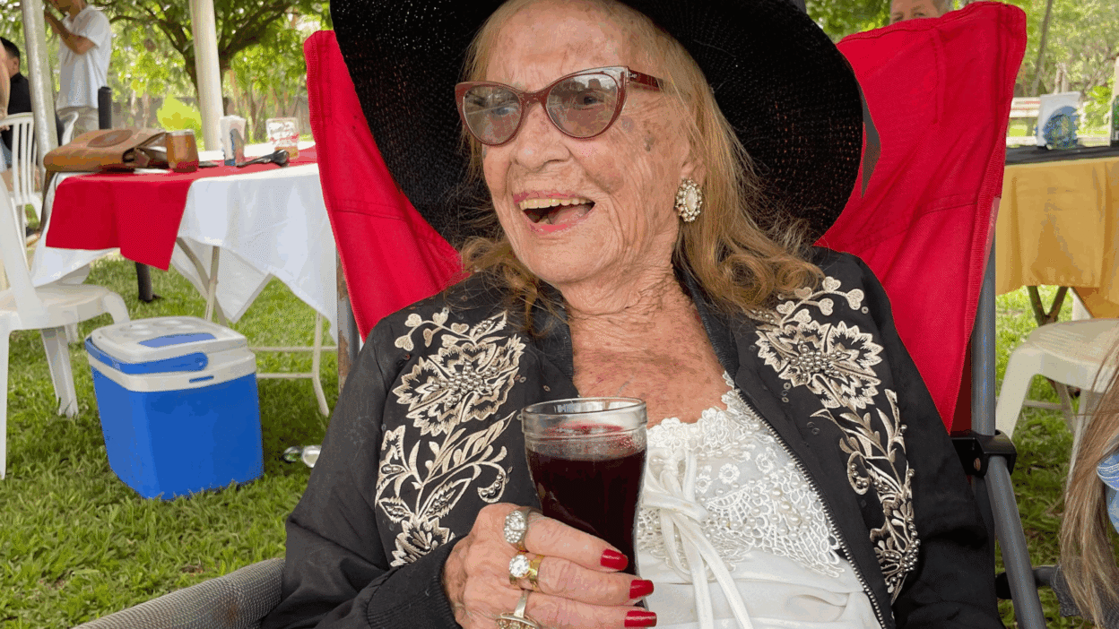 Mesmo lidando hoje com sinais de demência, Dona Pifa segue vital: canta, recita poesias, recebe o carinho da família e garante que o segredo da longevidade é simples, alegria de viver.