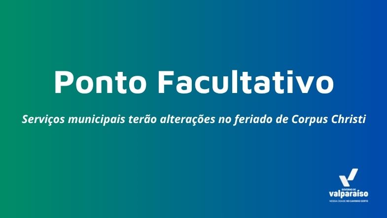 A Prefeitura de Valparaíso de Goiás informa que, conforme Decreto Municipal publicado em 13 de junho de 2025, foi decretado ponto facultativo nos dias 19 e 20 de junho (quinta e sexta-feira), em virtude do feriado de Corpus Christi, celebrado no dia 19.