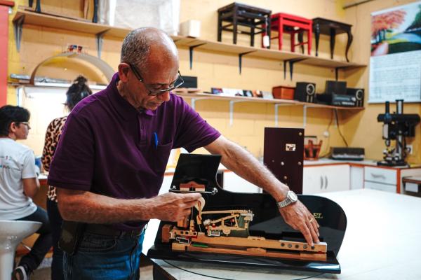 Atualmente, Rogério Resende é o único restaurador de piano do DF. De família pobre, sua paixão pelo instrumento começou ainda na terra natal, aos 18 anos, quando viu pela primeira vez um de perto. “Fiquei extasiado com a produção e com o tamanho do piano. Mas não tive chance de tocar, só vi no clube. Mas aquilo ficou guardado”, lembra.