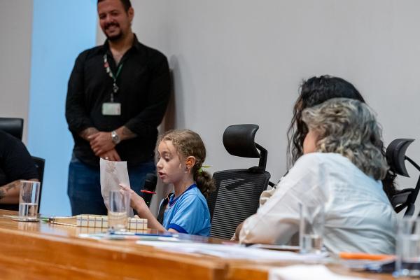 “Cuidem do nosso planeta, por favor, porque a gente só tem um”, leu a menina Julieta no auditório da Câmara Legislativa. O trecho foi extraído de carta redigida pelos alunos do terceiro ano da Escola Classe 115 Norte. As crianças participaram do Seminário Infância e Crises Climáticas, promovido por iniciativa do distrital Fábio Felix (Psol) nesta segunda-feira (15). O evento também recebeu o lançamento da cartilha pedagógica Cuidar do planeta é cuidar da gente. O documento oferece orientações para professores abordarem a questão ambiental em sala de aula.