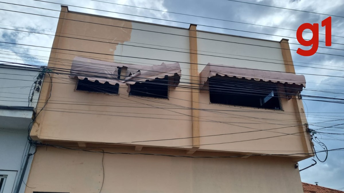 Ao chegar no local, a equipe se deparou com parte do corpo da vítima para fora da edificação, pendurado em um toldo.