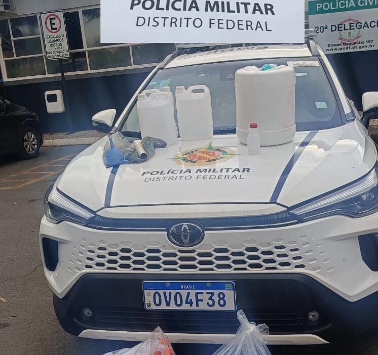 No local, foram apreendidos cinco galões grandes do entorpecente, sete aparelhos celulares e diversos materiais utilizados no preparo e fracionamento da substância.