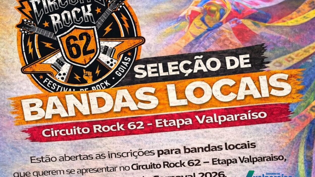 Atenção, bandas de Valparaíso de Goiás! Estão oficialmente abertas as inscrições para a seleção de bandas locais que desejam integrar a programação do Circuito Rock 62 – Etapa Valparaíso, que acontece durante o Carnaval 2026. A iniciativa valoriza os talentos da cidade e fortalece a cena cultural local, abrindo espaço para que artistas mostrem sua identidade, presença de palco e originalidade para um grande público.