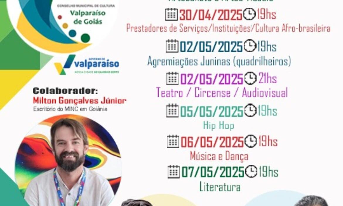 O Governo Municipal de Valparaíso de Goiás, por meio do Conselho Municipal de Cultura (CMC), realizará entre os dias 29 de abril e 07 de maio de 2025 uma série de Conferências Setoriais On-line. A iniciativa tem como objetivo fortalecer a participação da sociedade civil na construção de políticas públicas para a cultura no município.