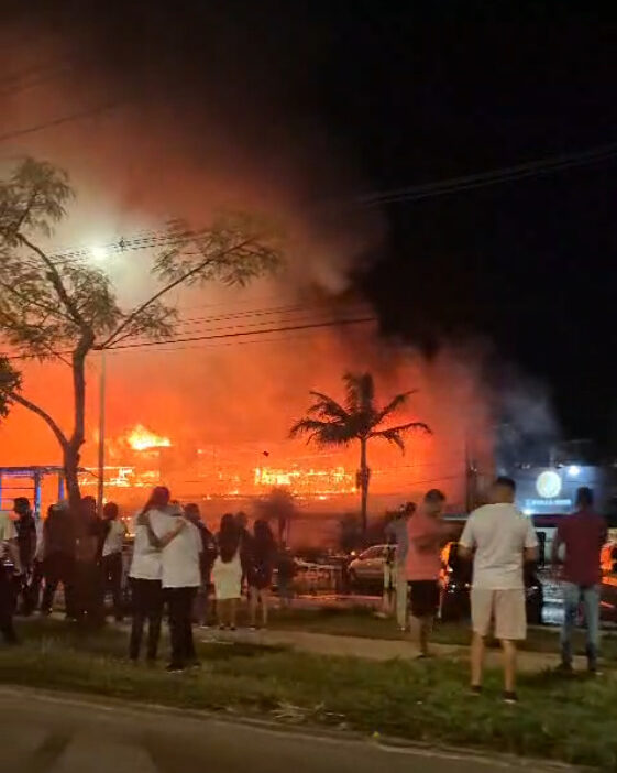 Um incêndio de grandes proporções atingiu, na noite desta sexta-feira (14/11), o Santa Fé Bar, no Jardim Botânico (DF). As chamas se espalharam rapidamente e também destruíram a academia de jiu-jítsu Gracie Barra, instalada no segundo andar do prédio.