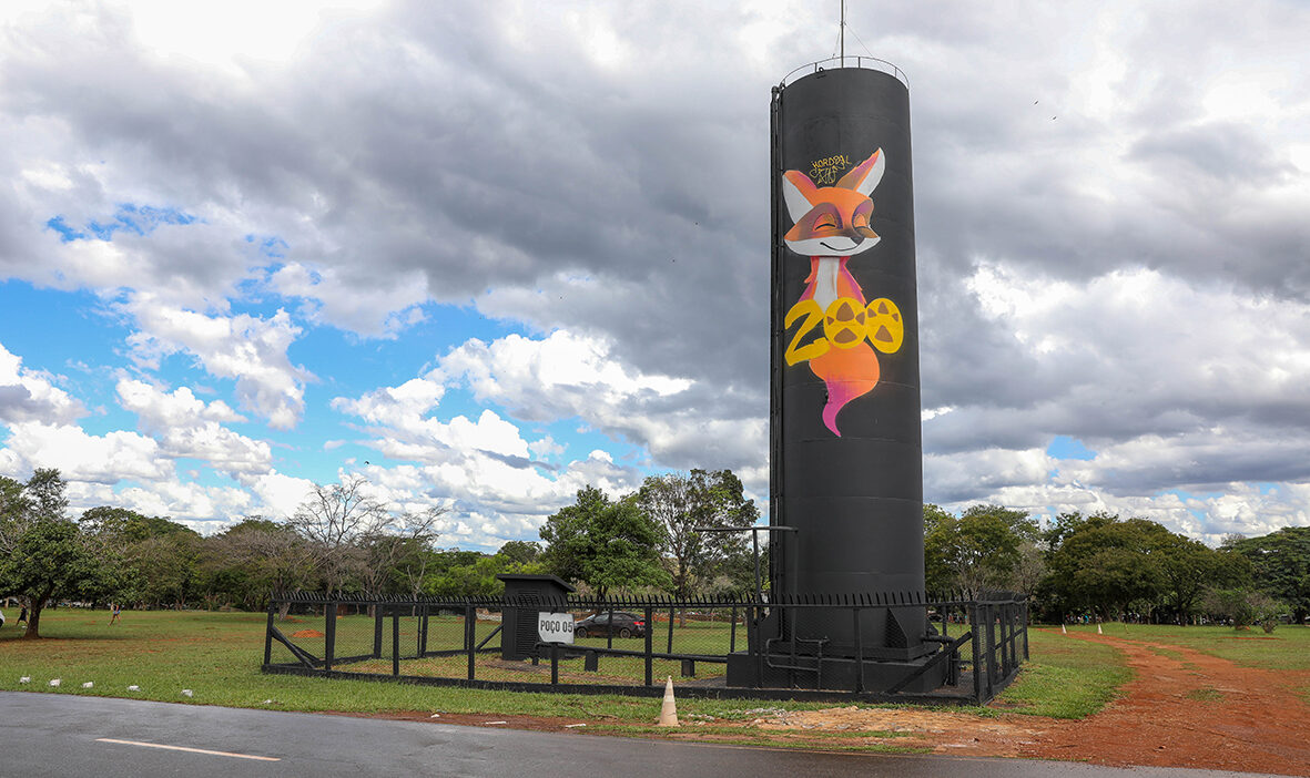 Um dos símbolos mais emblemáticos da Fundação Zoológico de Brasília está de cara nova. Visível para quem passa pela Estrada Parque Guará (DF-051), a caixa d’água foi reformada e ganhou uma ilustração que retrata a lobo-guará Atena, mascote oficial do zoo. O desenho foi assinado pelo artista brasiliense Douglas Kordyal, que pretende completar a arte com uma homenagem à girafa Yaza, falecida em março deste ano, aos 21 anos.